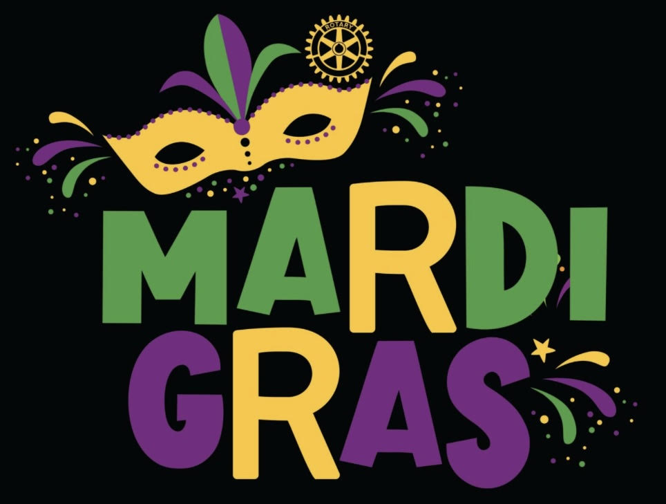 Fat Tuesday, February 17th: 5PM Rotary Social: Mardi Gras Party! Wear your Mardi Gras colors and beads! Structured pot luck. Wear a costume or come as you are! We need appetizers, entrees, side dishes, desserts and drinks. Bring plenty of food and drinks to share! Please email frankspeesjr@gmail.com what you will bring do avoid duplications!